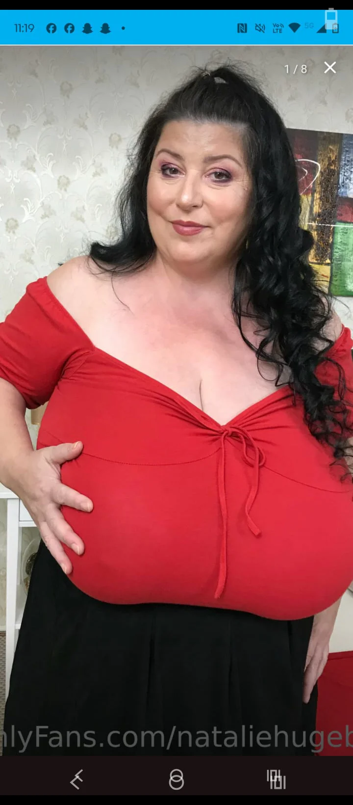 Natalie caressing her bossom